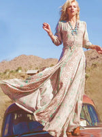 This dress is a perfect blend of casual style and sophistication, allowing you to shine with femininity on your special occasions. Made from light and flowing fabrics, this Long Summer Dress offers comfort while enhancing your figure. Its flattering V-neckline shows off your cleavage in a subtle and elegant way, while the slit in the front adds a sultry and bold touch. With its long, flowing cut, this summer dress is perfect for weddings, summer parties or outdoor events.Make a unique fashion statement with this exceptional piece and let your natural beauty shine in the spotlight.
