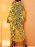 This beach dress is designed to enhance your figure while adding a touch of sophistication to your summer look. The vibrant yellow color of this beach dress adds a touch of playfulness and brightness to your outfit. It's perfect for expressing your hapiness and your passion for summer. The flattering boat neckline elegantly highlights your neck and shoulders. It adds a touch of sophistication to the ensemble, allowing you to feel both elegant and casual. Made from lightweight mesh, this beach dress offers light coverage while subtly revealing your swimsuit or beachwear underneath. The plus-size cut of this beach dress ensures a comfortable, flattering fit for women of all silhouettes. Don't miss the opportunity to add this Plus Size Cover Ups to your collection.