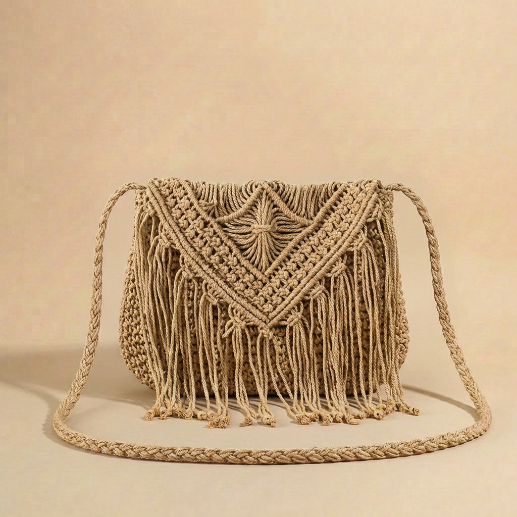 This beautiful boho macrame bag perfectly completes your summer look with its elegant ethnic detail