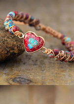 These unique bracelets capture the boho spirit while symbolizing the love and deep connection between friends. Each bracelet is carefully crafted using high-quality blue and red imperial jasper beads. Imperial jasper is a gemstone renowned for its deep blue and rich red hues, adding a touch of vibrant beauty and inner strength to your wrist. The large heart motif adds further meaning, representing enduring love and friendship. Treat yourself or your best friend to these Boho Friendship Bracelets and celebrate your special bond. They symbolize enduring love and friendship, adding a touch of spirituality and boho style to your jewelry collection.