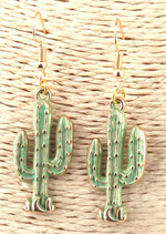 Boho Dangle Earrings - Green Cactus
