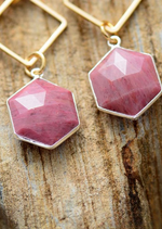 Each pair of earrings is precisely crafted, with a gold hook that delicately hooks onto your ear. The hexagon-shaped metal pendant adds a modern, geometric touch to the jewelry. The real highlight of these earrings is the natural stone that accompanies them. The contrast between the shiny golden metal and the natural stone beneath creates a captivating visual effect. The metallic hexagon perfectly frames the natural stone, highlighting its color and brilliance. These earrings are perfect for adding a touch of elegance and sophistication to your outfits. Treat yourself to these beautiful Gold Beaded Boho Earrings. Let your personality shine through and add a touch of sophistication to your jewelry collection.