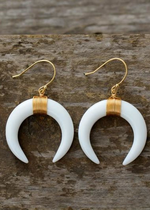 The white half-moon pendant embodies purity and clarity. Its soft, luminous color adds a touch of sophistication to your look. The black pendant represents stability and elegance. Its deep, mysterious hue adds a modern dimension to these earrings. These earrings are versatile and can be worn for everyday wear as well as for special occasions. Made from high-quality materials, these earrings are lightweight and comfortable to wear all day long. The gold hook is durable and hard-wearing, ensuring a secure hold. Order now and add a touch of sophistication to your jewelry collection.