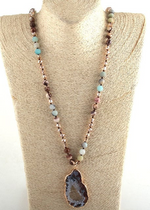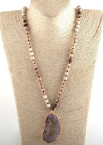 Each natural stone is carefully selected for its quality and brilliant color. The varied colors of the stones add a vibrant and joyful touch to this necklace. The stone pendant with hole is the focal point of this necklace. It adds an extra dimension to the piece, creating a unique and artistic style. The hole in the stone creates an interesting contrast with the surrounding natural stones, giving this necklace a distinctive character. With a length of 88 cm, this necklace offers many styling possibilities. You can wear it on its own for a casual, boho look, or layer it with other necklaces to create a trendy, personalized look. Whether for a special evening, a formal occasion or simply to add a touch of color to your everyday outfit, this Ethnic Boho Beaded Necklace is a perfect choice. It's also an ideal gift for expressing your love and affection to loved ones.