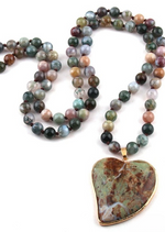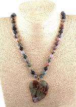 This necklace is designed with care, using high-quality India Agate natural stones, which are renowned for their unique colors and patterns. The heart-shaped pendant is a true symbol of love and affection. This Ethnic Boho Necklace Green Heart Pendant is perfect for adding a touch of style and elegance to your outfit. Whether it's for a special occasion or simply to brighten up your day, this necklace will be a perfect choice. Treat yourself to this beautiful Ethnic Boho Necklace - Green Heart Pendant, or give it as a gift to someone special. Be seduced by its natural beauty and romantic symbolism.