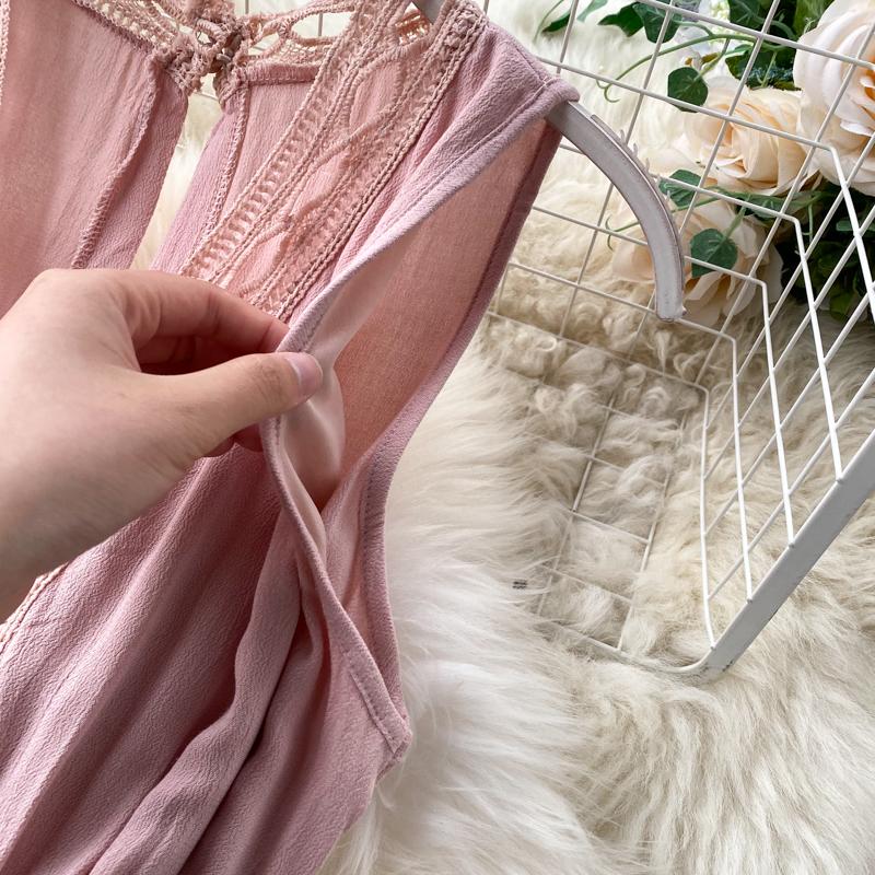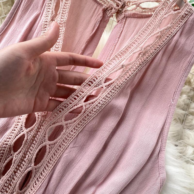 This Chic Boho Sleeveless Open Neck Jumpsuit is a type of clothing that combines elements of boho style and chic design. It is designed to be a versatile and stylish one-piece outfit that is perfect for a variety of occasions. It features a sleeveless design with a wide, open collar that adds a touch of elegance and sophistication to the garment. The boho style of the jumpsuit can be seen in its intricate patterns and embroidery. These features add to the overall aesthetic of the jumpsuit, giving it a loose and artistic vibe.