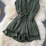 Description of the Chic Boho Sleeveless jumpsuit with open neck