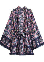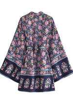 Elevate Your Look with Our Elegant Navy Blue Boho Floral Kimono