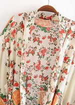 Long Boho Kimono White decorated with flowers
