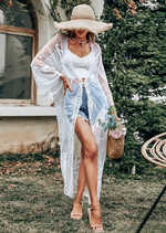 Long Kimono Boho semi-transparent Lace accents