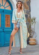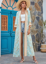 Step into Boho Chic with the Sky Blue Floral Long Kimono