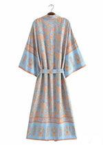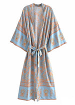 Long Stylish Pale Blue Floral Boho Kimono