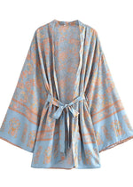 Stylish Pale Blue Floral Boho Kimono