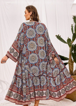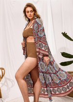 Amp up Your Style with our Boho Tribal Print Long Kimono in Red Garnet