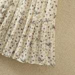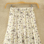 Boho Romantic Long Pleated Skirt with Floral Print in Beige