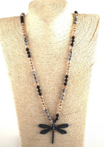 Boho Beaded Necklace - Dragonfly Pendant