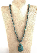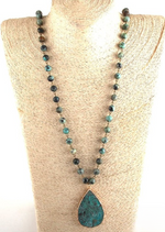 India Agate round natural stones are known for their vibrant colors and unique patterns. The blue and green hues of these stones create a striking contrast and add a touch of natural color to your look. The oval stone pendant adds an extra dimension to this necklace, offering a versatile style to suit any occasion. With its length, this necklace can be worn on its own for a casual, elegant look, or paired with other necklaces to create a trendy layered style. Whether you want to add a splash of color to your everyday outfit or complement a dressier look, this Boho Beaded Necklace Natural Stone is a perfect choice. Treat yourself or someone special to this magnificent Boho Beaded Necklace Natural Stone and let yourself be seduced by its natural beauty and spiritual significance.