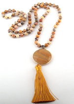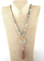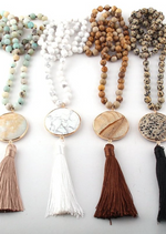 The round natural stones are carefully selected for their natural beauty and energetic properties. Each stone has its own unique color and nuance, creating a captivating visual effect. The pendant adds a touch of lightness and movement to this necklace. The pom-pom is designed with top-quality yarns, offering a soft texture that's pleasant to the touch. With its generous length, this necklace can be worn in a variety of ways. You can let it hang freely for a casual, boho look, or layer it with other necklaces to create a bolder, trendier style. These Boho Beaded Necklace Pompom Pendant are perfect for adding a touch of femininity and style to your outfit. Whether it's for a special occasion, a night out with friends or simply to feel beautiful every day, this necklace will be a perfect choice. Let yourself be seduced by the timeless elegance of this unique piece of jewelry and express your style with confidence and originality.