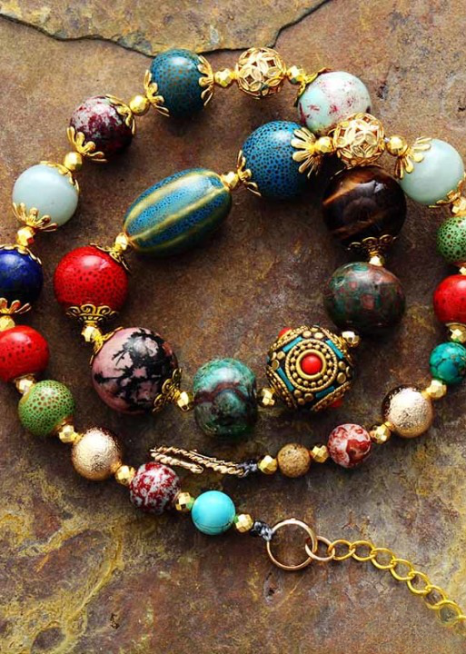 Boho Gold Ethnic Necklace: a vibrant, charming piece of jewelry that will perfectly complement your look