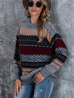 The round neckline and long sleeves exude sophistication, making this Boho Pullover Sweater a versatile piece that seamlessly transitions from day to night. Whether you're lounging at home or exploring the town, this Womens Boho Sweater is your go-to choice for effortless sophistication and chic charm.