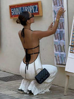 Designed to feel both free and feminine, this sexy boho dress is all about flowing lines and striking details. With its plunging V-neckline and dramatic open back, it’s the kind of dress that turns simple moments into something special. The long, lightweight silhouette moves with grace, making it a go-to in all occasion.