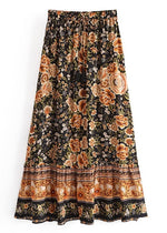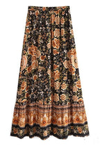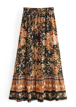 Black Boho maxi Skirt with orange floral pattern