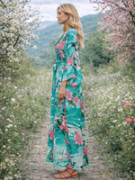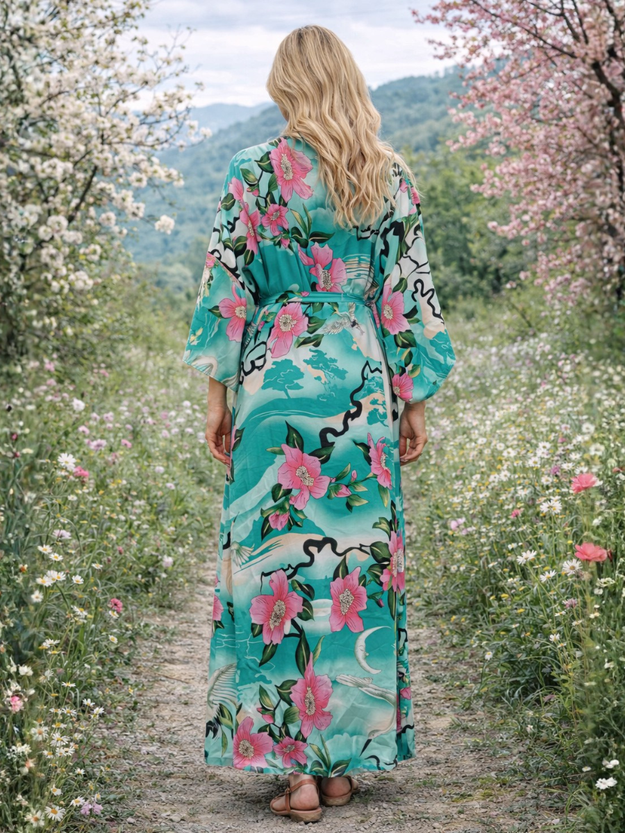 Glow in bohemian elegance with our Blue Boho Kimono