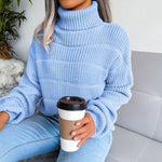 Wrap Yourself in Style and Comfort with Our Blue Boho Knit Roll Neck Sweater