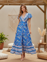 Embrace bohemian elegance with this flowing blue maxi dress