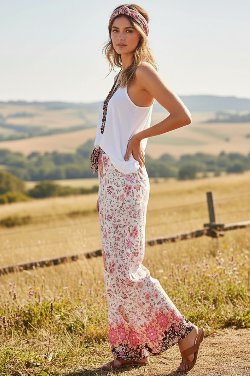 Our floral boho pant brings soft femininity and effortless elegance to your everyday style