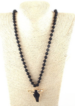 The round natural stones are carefully selected for their natural beauty and energetic properties. Each stone has its own unique color, adding a touch of color and vitality to your outfit. The golden horn zebu head pendant is the focal point of this necklace. It represents the strength, beauty and symbolism of this emblematic animal. The gold finish adds a touch of sophistication and glamour, adding an extra dimension to this necklace. With its generous length, this necklace can be worn in a variety of ways. You can let it hang freely for a casual, boho look, or layer it with other necklaces to create a bolder, trendier style. Whether for a special occasion, an elegant evening out or simply to express your unique everyday style, this Boho Beaded Necklace Horn Pendant is a perfect choice. It can also make a precious gift for your loved ones, symbolizing strength and beauty.