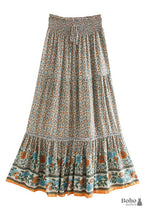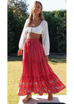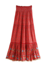 Boho Bright red maxi Skirt with floral pattern
