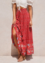 Description of the Boho Bright red maxi Skirt with floral pattern