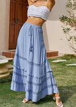 Boho Chic Blue Maxi Skirt with cord