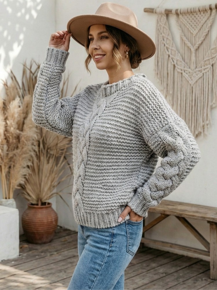 Boho Chic Grey Knit Pullover
