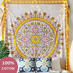 Impossible to resist the charm of this wall hanging with its arabesque and floral patterns! An ambassador for Indian culture, this majestic mandala in golden hues is strongly influenced by Persian, Arab and Turkish cultures. This hippie-style hanging will bring a touch of boho decor to any living room, kitchen, bedroom or dining room. What's more, you'll particularly appreciate the fine weave and quality of the cotton fabric used to make this delightful Boho Hippie Tapestry. Hanging above your headboard, this Boho Hippie Tapestry will stimulate your energy while imposing silence on your heart and mind. Order your Boho Hippie Tapestry now and treat yourself to a spiritual awakening.