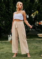 These khaki cotton boho wide-leg pants with a tassel pattern are designed to be a comfortable and fashionable piece of clothing, perfect for casual and relaxed occasions. It features a wide, loose silhouette with a high waist that offers a comfortable and flattering fit. The khaki color of the pants adds a subtle, earthy tone to any outfit, while the tassel pattern gives it a fun and playful touch. The boho style of the pants can be seen in these unique patterns.