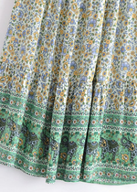 Boho maxi Skirt Esme Flower in green with yellow and purple tones