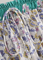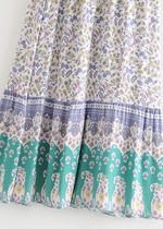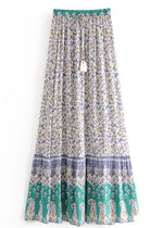 Description of the Boho maxi Skirt with purple and green floral pattern