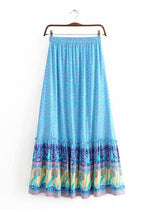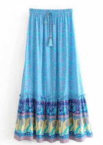Description of the Boho maxi Skirt in Blue Peacock floral patterned