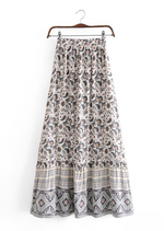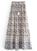 Boho maxi skirts with pattern, pompom cord