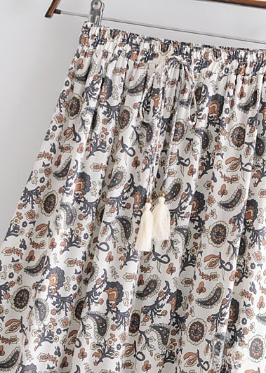 Description of the Boho maxi skirts with pattern, pompom cord