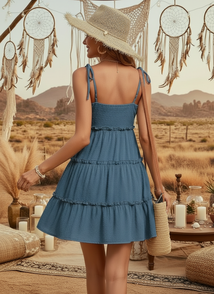 Unleash your inner free spirit with our Boho Chic Mini Dresses. With its sexy spaghetti straps and round neckline, this dress exudes effortless elegance. Whether you're lounging by the pool or sipping cocktails at a beachside bar, you'll feel confident and beautiful in this flattering silhouette.