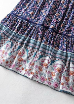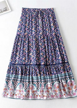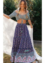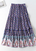 Description of the Boho Purple flared maxi skirt with floral pattern