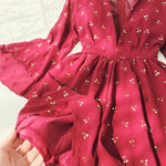 This beautiful cherry bell sleeve combishort is all you need for a more feminine and elegant look. A perfect outfit for the summer that will serve you the vacations on the beach or the outings in town. A very comfortable outfit with a belt on the waist to adjust it, it goes to any kind of morphology. With its boho style, it is very trendy and unavoidable in the eyes of beautiful women.