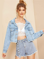 This short light wash denim jacket brings a fresh bohemian touch to your wardrobe