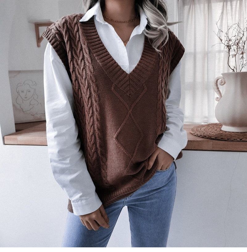 Amp Up Your Style with the Versatile Boho V-Neck Sleeveless Knit Sweater