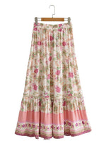 Boho white maxi Skirt ruffled pink floral pattern