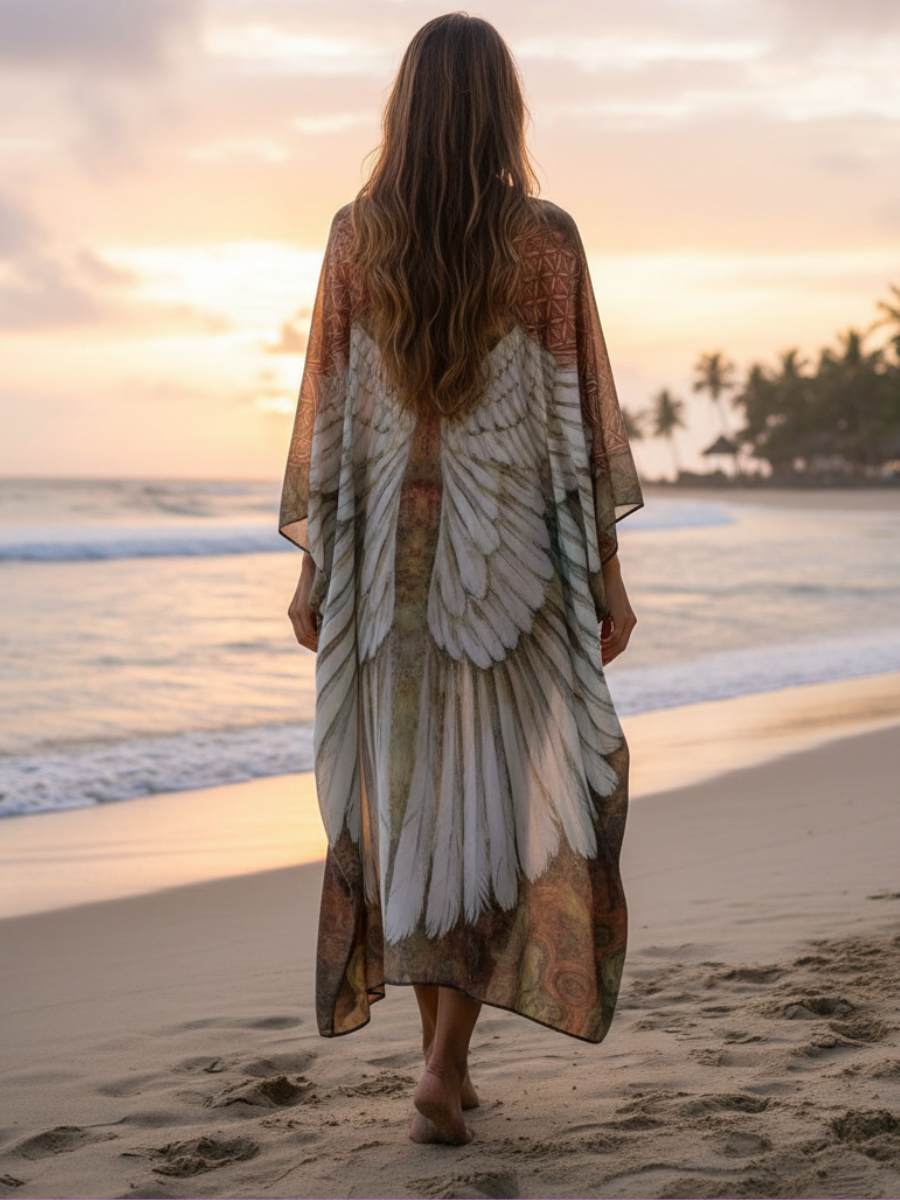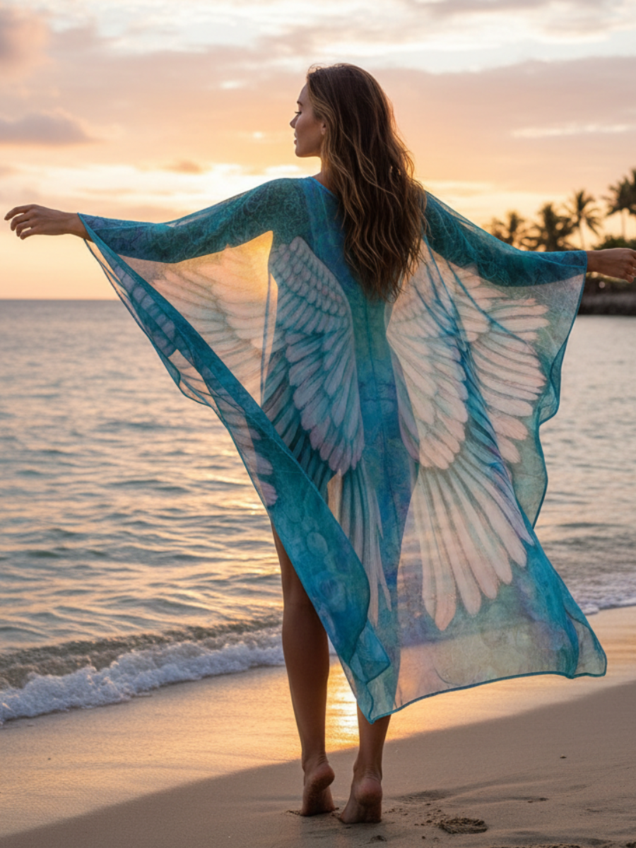The Boho Angel Wing Print Kimono is a poetic and feminine piece that brings lightness and grace to your summer wardrobe. Crafted from soft, lightweight fabric, it keeps you cool and comfortable while its flowing silhouette allows effortless movement. The delicate wing print and flattering V-neck add a magical, nature-inspired touch, perfect for beach days, seaside strolls, or relaxing by the pool.
