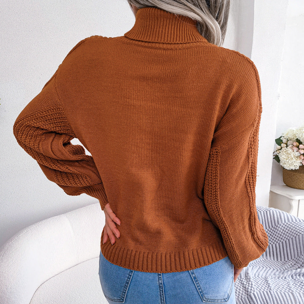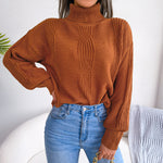 Upgrade Your Style with Our Brown Boho Turtleneck Sweater: The Perfect Mix of Fashion and Comfort!